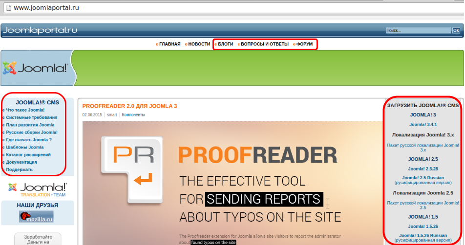 Если вас не устраивает версия Joomla на английском языке, отправляйтесь на сайт, который ориентирован на русскоязычную аудиторию. На этом портале также неплохой выбор справочных материалов, блог, форум, ответы на самые популярные вопросы и многое другое: