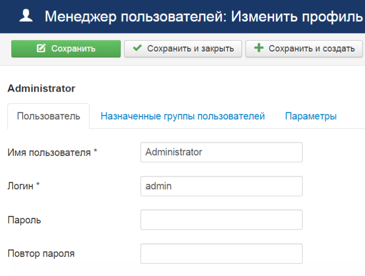 Нажмите на него, чтобы попасть в “Менеджер пользователей”. Здесь меняете: “Имя пользователя”, “Пароль” и “Логин”, а после сохраняете правки: